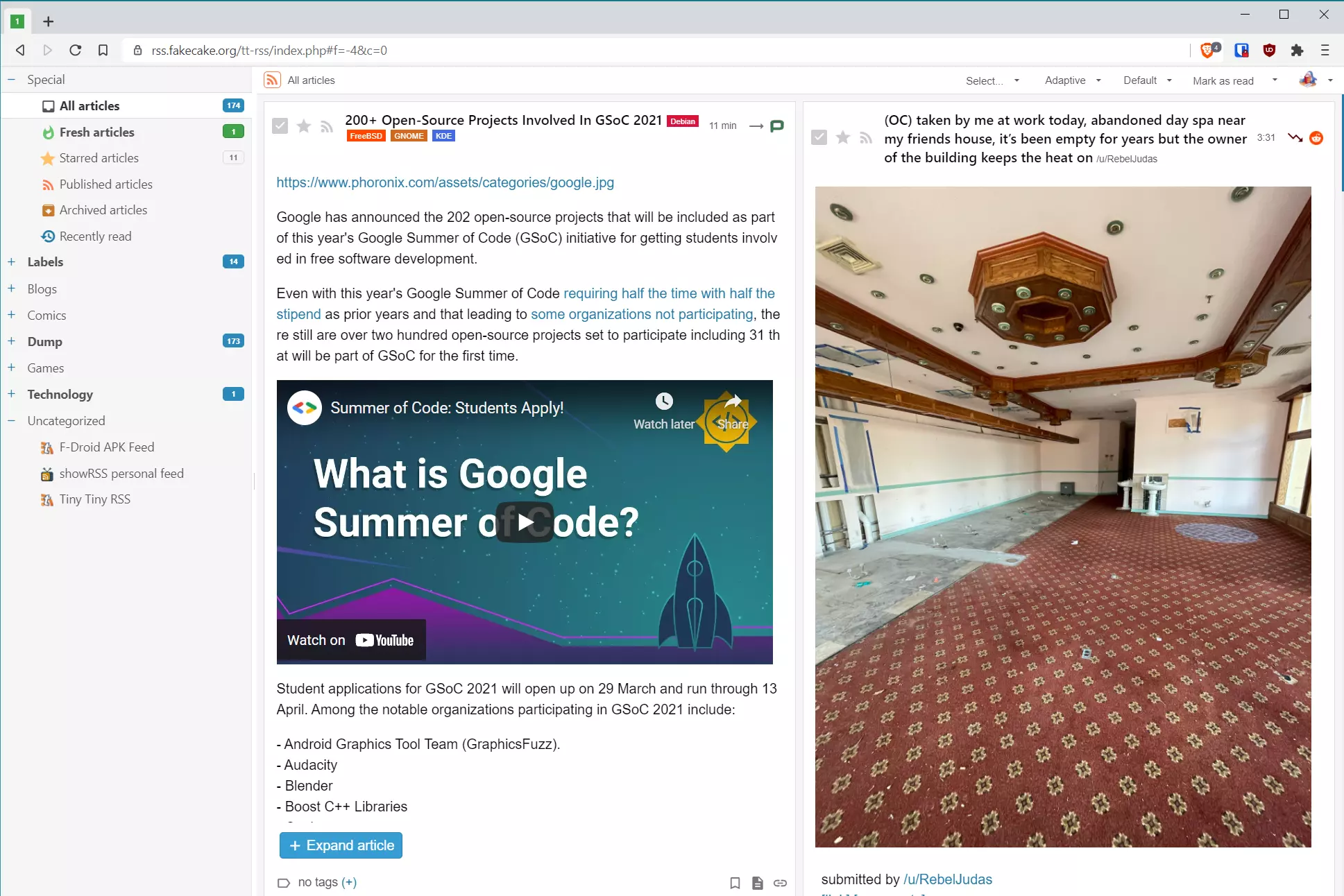 chybejici app s info boxem, TTRSS a immich zakladni popis